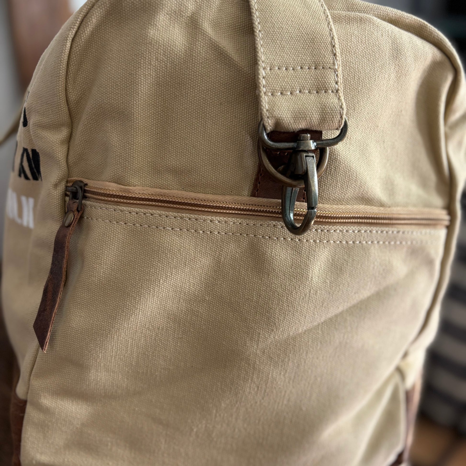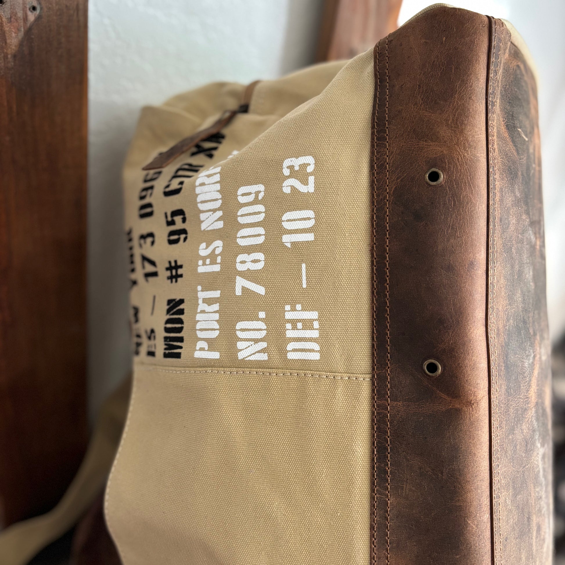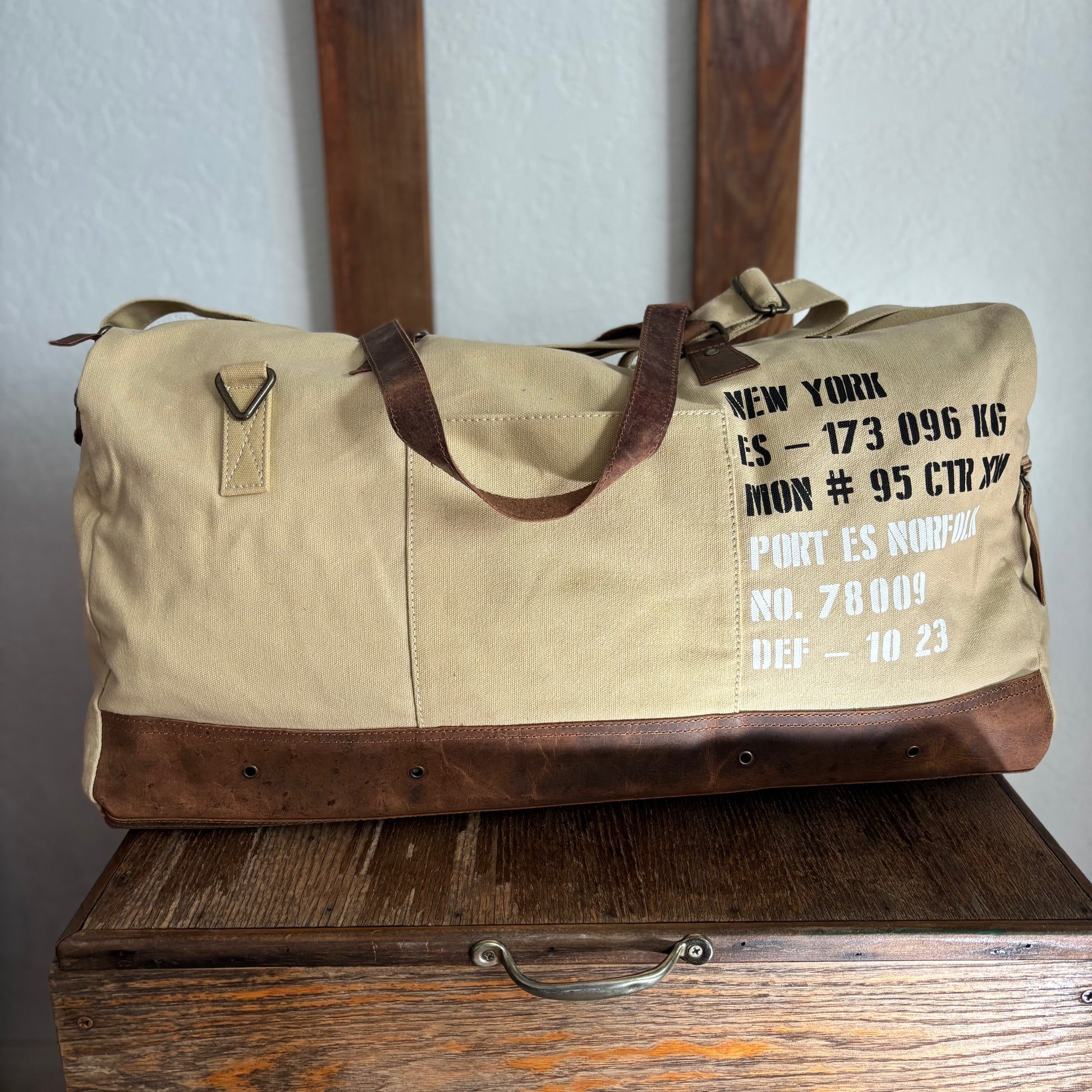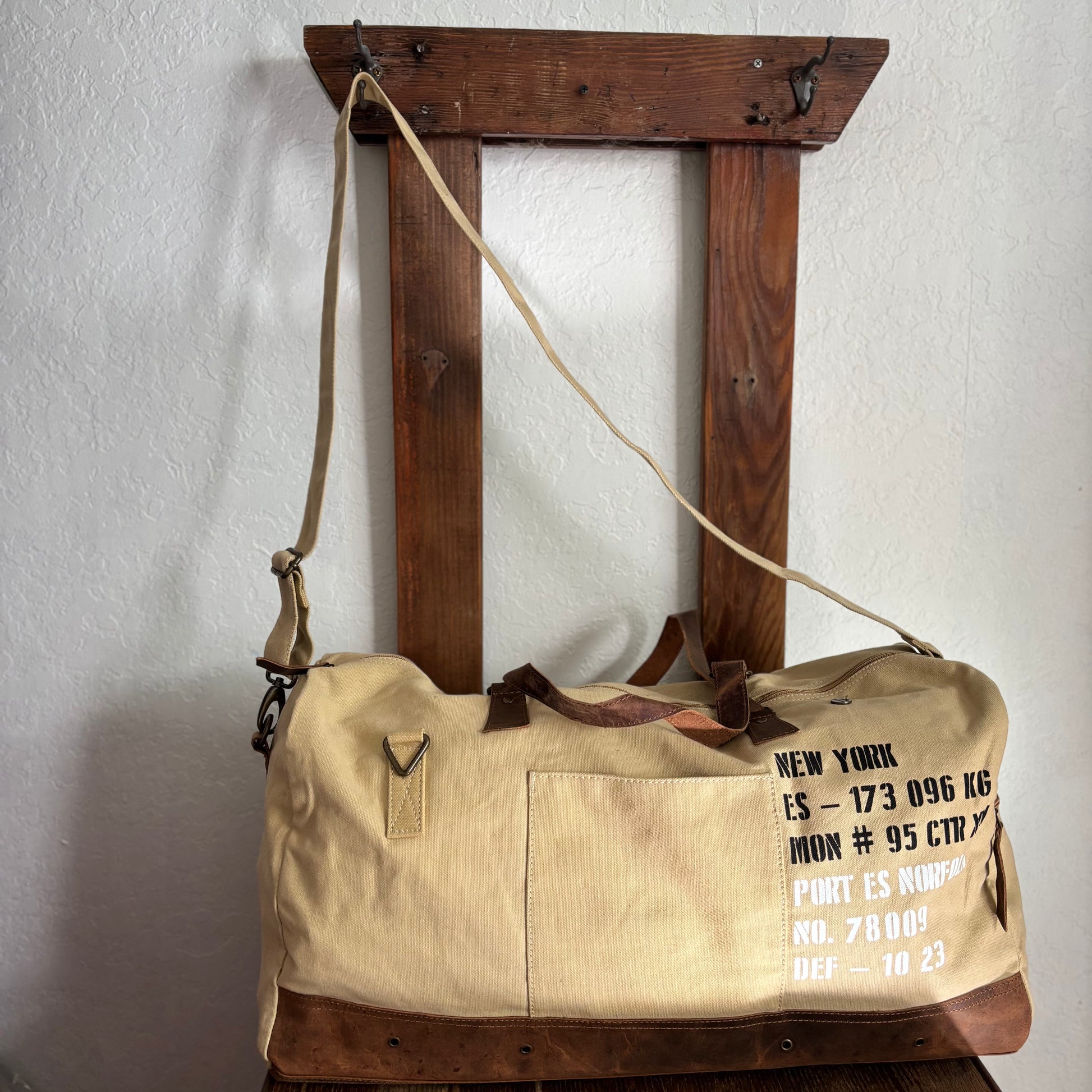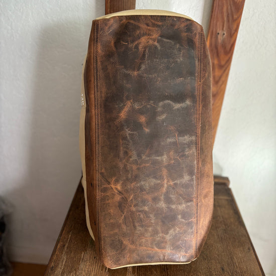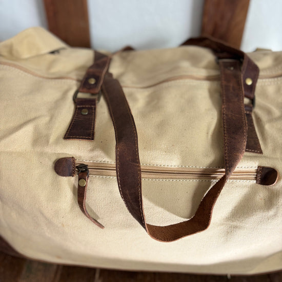 The Duffle’s come in two sizes and colorways, sand and green. These natural earth tones contrast seamlessly with the full leather base. The large and medium bags are classic travel and gym bags.