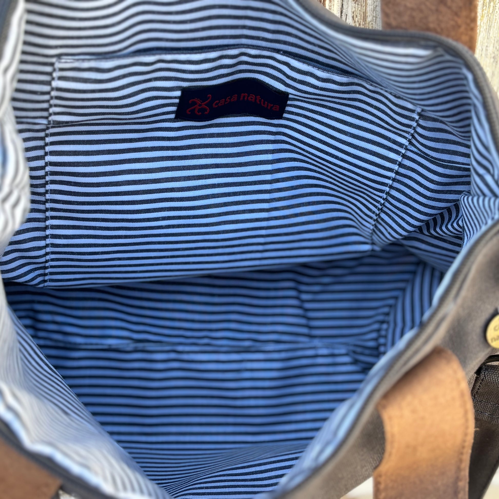 The Radley bag is classically crafted with a full leather base and handles. For versatility the bag has an adjustable crossbody strap. The full leather base contrasts seamlessly with the canvass. The bag is made from new canvass and lined with a 100% cotton. The bag features a Zipper closure and an open pocket inside. The prints on this bag are exclusive, natural and original, created especially for each model. The variations in the intensity and colour of the print are intentional and are an integral part of its vintage charm.