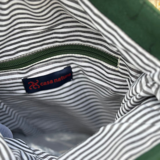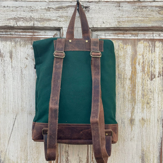 This backpack is part of our luxury line. Beautifully crafted from new canvass and high-quality leather, it makes for a great day pack. The base is leather contrasting stylishly with the canvass. The backpack features soft leather adjustable straps for comfort and a leather handle for carrying or hanging. The front has a zipped pocket and metal closing clip. Inside is fully lined with 100% cotton lining with a zip pocket.