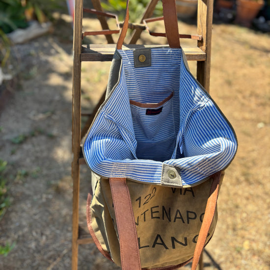 Our Retro collection is made from a combination of recycled canvas from old military tents, truck tarpaulins and new canvas. Retro is an exceptional bag that stands out both